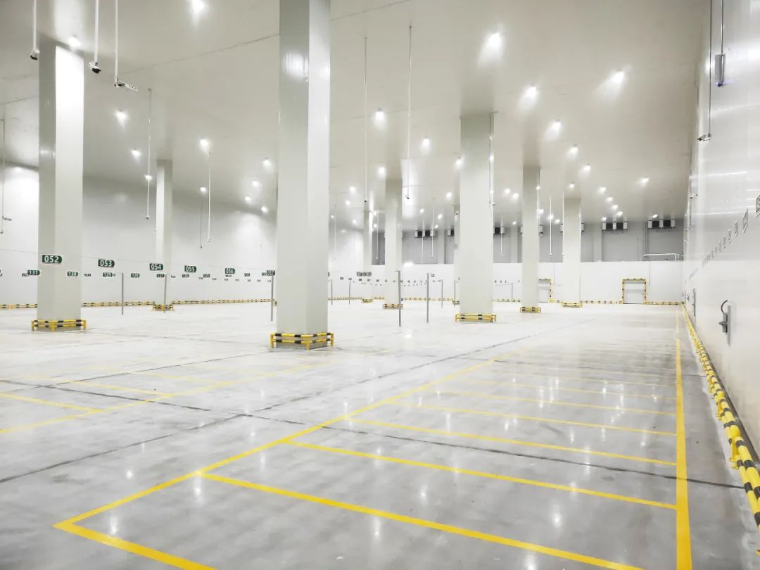 用冷風機降溫,溫度可達1℃~10℃,并設有滑開式冷藏門,軟性密封接頭,冷藏車可直接靠到月臺上,實行門對門的裝卸,作業,使進出庫基本不受外界溫度的影響。小型冷庫可在進門處建造門斗。 早期單扇速度為0.3~0.6m/s,目前高速電動冷藏門開啟速度達到了1m/s,雙扇冷藏門開啟速度達到2m/s。為避免危險,關閉速度控制在開啟速度的一半左右。門前裝有傳感式自動開關。這些裝置都是旨在縮短開關門時間,提高裝卸效率,減少操作人員停留時間。 采用發熱量小,功率小,亮度高的高效燈具,如鈉燈。高壓鈉燈效率是普通白熾燈的10倍,而能耗僅為低效燈具的1/10。目前在一些比較先進的冷庫中使用新型LED作為照明,發熱量和能耗更小。